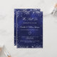 Um convite de casamento para renovação de votos moderno e elegante. fundo azul marinho decorado com faxes cintilantes prateados. A cor azul é irregular. Personalize e adicione seus nomes e detalhes da festa. Letras brancas coloridas.