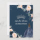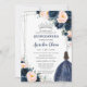 Convite Marinho Azul Princesa Floral Silver Quinceañera
