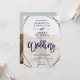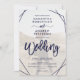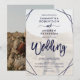 Um convite de casamento moderno e simples com duas fotos, com uma cobertura branca, um quadro de borda azul marinho e uma letra elegante de script, adicione 2 de sua foto favorita. Um casamento simples e elegante.
