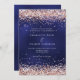 Um fundo azul marinho, a cor azul é irregular. Decorado com rosa dourado confetti. Personalize e adicione seus nomes e detalhes da festa.