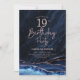 Marinho azul e rosa dourado agate 19º convite de aniversário. Elegante design moderno com cor azul-real de água agate marble geode background, faux glitter rosa gold e typografia script font. Trendy convida o cartão perfeito para uma comemoração de dia das mulheres na moda. Impressos convites Zazzle ou modelo de impressão digital instantânea para download.