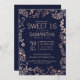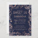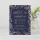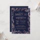 Elegante, moderno e chic faux rosa gold e trendy marinho blue floral hand, modelo desenhado pela mão, doces convites de festas de celebração de 16 anos. Este design clássico e sofisticado é perfeito para a garota de aniversário de classe, tendências e na moda. Personalize com sua própria mensagem na frente e um monograma personalizado inicial no verso. Todas as impressão de fotos.