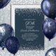 Convite Marinho Azul Silver Diamond Glitter 90 de Aniversá