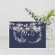 Um elegante cartão de detalhes de casamento azul-marinho com luzes bonito de cordas e flores desenhadas à mão. Personalize com seus detalhes especiais definidos na tipografia da na moda. Projetado por Thisnotme©