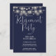 Este convite de festas de aposentadoria de script elegante azul-marinho pode ser personalizado com todas as suas informações especiais de celebração. Projetado por Thisnotme©