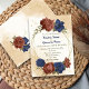 Lindos convites para casamentos outono de tons de terra com terracota e flores azuis marinhos com folhas verdes em um quadro geométrico. São simulados os detalhes do brilho dourado. É adequado tanto para os convites para o casamento como para o noivado. PARA MAIS PRODUTOS CORRESPONDENTES, clique na coleção acima ou entre em contato comigo