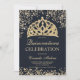 Um confete glitter dourado e luxuoso em azul-marinho escuro edível d com tipografia elegante da caligrafia Quinceañera, com uma princesa luxuosa desenhada à mão, a coroa dourada tiara.