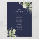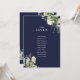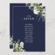 Estes elegantes números de mesa de casamento floral azul-botânico azul-marinho podem ser personalizados com o plano de assentos dos seus convidados definido em tipografia quic. As placas são impressas na parte frontal e traseira (lado duplo). Projetado por Thisnotme©