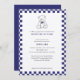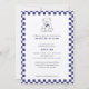 Este encantador convite dá um tom doce e sofisticado para o seu chá de fraldas. Ele apresenta um quadro clássico de gingham azul marinho em volta de um simples ursinho de pelúcia desenhado à mão. O design é uma combinação perfeita de estilos pré-filmados e clássicos, oferecendo uma maneira mínima, mas sincera, de dar as boas vindas ao seu "filhote". As linhas limpas e as imagens gentis criam um aspecto eterno, fazer-o como um guardião memorável para uma celebração tão especial. É uma design doce e subestimada para um chá de fraldas clássico.