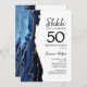 Marinho azul, branco e ouro agitam o 50º convite de aniversário. Elegante design moderno com cor azul-real de água agate marble geode fundo, fonte falsa de ouro brilhante e script de tipografia. Trendy convida o cartão perfeito para uma comemoração de dia das mulheres na moda. Impressos convites Zazzle ou modelo de impressão digital instantânea para download.