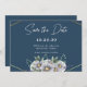 Convite Marinho Blue Daisy Floral Wedding Salvar Data