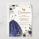 Convite Marinho Blue Floral Borboleta Dourada Quinceanera