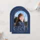 Este simples cartão de graduação minimalista azul marinho serve tanto como um anúncio de graduação quanto como convite de festas de formando, e apresenta uma foto, um quadro de arca e uma elegante tipografia moderna.