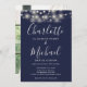 Com luzes bonito de cordas e nomes de estilo de assinatura, este elegante convite de casamento pode ser personalizado com os detalhes do seu dia de casamento em letras brancas chic num fundo azul marinho com a sua foto escolhida no verso. Projetado por Thisnotme©
