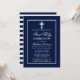 Marinho Elegante Blue e White Stripes Primeiro Convite à Comunidade com Cruz. Quadro Branco.