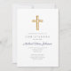 Convite Marinho Blue Wood Cross Religião Boy Christening