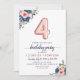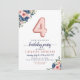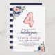 Marinho Floral Azul Blush Rosa Balão 4° Convite de Aniversário O design apresenta marinho de aquarela azul e flores cor-de-rosa pinceladas com sotaque de balão de ouro rosa. Se você quiser mudar os balões numerados, sinta-se à vontade para me enviar um e-mail em panggadesigns@gmail.com