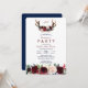 Um design russo da Boêmia para eventos especiais, todas as estações! Este design apresenta galhadas de veados, merlot de aquarela, buquês de flores azuis marinhos, setas com as mesmas flores e atrás um fundo azul marinho. Use a ferramenta Personalizar para adicionar suas informações. Para mais, visite por favor a minha Coleção de Anéis Florais Azuis do Marinho Merlot.