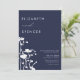 Convite Marinho Botânico Floral Moderno Casamento
