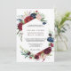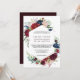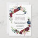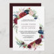 Este convite para casamento floral de marinho burgundy é perfeito para um casamento elegante. A design apresenta flores vermelhas, burladas, marinhos, roxas, azuis e esbranquiçadas lindamente pintadas à mão e folhas verdes.