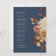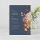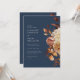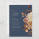 Marinho Cai Tudo Em Um Convite De Casamento. Este elegante convite para o casamento apresenta cor d'água queimada à mão, laranja queimada e folhas de terracota, creme e dálias beges, e belas rosas de cor ferrugem sobre fundo azul marinho. A parte de trás do inclui texto para adicionar os detalhes do seu casamento. Localize itens correspondentes na Coleção de Casamentos de Romance de outono Azul de Marinho.