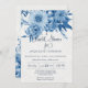 Convite Marinho chá de panela Azul, Branco, Damasco para I