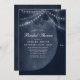 Convide seus entes queridos para celebrar a noiva a ser com este chá de panela charmoso. Apresentando uma silhueta rústica de árvore enfeitada com luzes de cordas cintilantes contra um fundo azul marinho profundo, este convite define o tom para um encontro sofisticado e memorável. Perfeito para uma noite ou chá interior, este design irá certamente encantá-los.