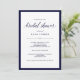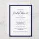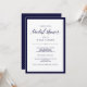 Estes convites de chá de panela elegantes e na moda apresentam um texto azul marinho chic sobre um fundo branco, bordado em marinho.