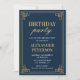 Convite Marinho chic azul Dourada 87ª Festa de aniversário