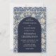 Convite Marinho chic marfim azul floral Art Nouveau Morris