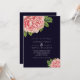 Um convite de casamento clássico e eterno em azul marinho e rosa. Duas minuciosas pénicas cor-de-água cor-de-rosa decoram os cantos deste convite, num sofisticado fundo azul-marinho, que é o mesmo que o backer. Seu texto de convite está em branco contrastante. .