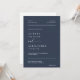 Este elegante convite de casamento minimalista mescla uma fonte serif limpa com uma bela caligrafia escrita para as palavras "e" e "responder", dando-lhe um eterno e sofisticado olhar sobre um fundo azul marinho. O design apresenta uma foto personalizada do casal e um código QR que direciona os convidados para o RSVP e acessa os detalhes do evento, fazer-o uma combinação perfeita de estilo e conveniência. Aceda a este convite amigável para todos os componentes, reduzindo a necessidade de RSVP adicional e cartões de detalhes. Basta adicionar seu código QR à parte traseira do convite e compartilhar informações essenciais do casamento digitalmente. Personalize os nomes e o texto em apenas alguns passos fáceis e personalize o convite com sua própria foto para um toque único e significativo. Por favor, note: as belas escrevendo das palavras "e" e "responder", bem como as linhas tanto na frente como no verso e outros elementos gráficos de trabalho de arte, não podem ser editadas, movidas ou eliminadas, São corrigidas. O script para as palavras "e" e "responder", juntamente com as linhas e outros trabalho de arte gráficos, não pode ser editado, movido ou excluído. Estes elementos são fixos. Se você quiser mudar a cor, poderá personalizar facilmente o convite para corresponder ao seu tema de casamento clicando em "Personalizar o convite". Você pode personalizar este convite com seu texto e compartilhá-lo digitalmente através de texto, email ou mídia social. Preferir um toque tradicional? Você também tem a opção de enviar uma versão impressa para seus convidados — ou faça ambos para uma conveniência adicional!