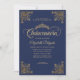 Convite Marinho Clássico Frame Dourado Azul Tiara Quincean