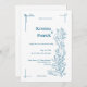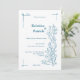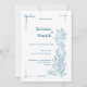 Design simples, mas elegante, de flores no estilo de desenho clássico, decoradas com bordas minimalistas em azul escuro com fundo branco. Esta é uma design refinada e saborosa para permitir que sua família, amigos e os entes queridos se juntem a você no dia mais comemorativo.