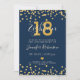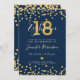 Design de convite elegante e simples "18ª Festa de aniversário" com o motivo do Marinho Glam Glitter Lights Dourado e nome personalizado e texto de detalhes. Fácil de usar e fácil de personalizar. Faça o pedido hoje!