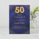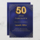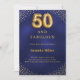 Um fundo azul marinho, incolor. Decorado com cantos de ouro. Personalize e adicione um nome e detalhes da parte. 50 com letra de estilo balão.