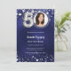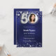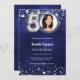 Um convite para fotos moderno e na moda para uma festa de aniversário 50ª. Um fundo azul marinho, decorado com estrelas. A cor azul é irregular. Personalize e adicione sua foto e detalhes da festa.
