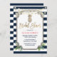Convites de chá de panela Dourados Marinho de ananás Blue Stripes.