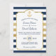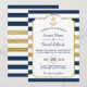 Marinho De Âncora Dourado E Convites Náuticos De Casamento De Faixa Dourada.