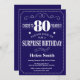 Surpresa 80 de Aniversário Marinho de Convite Azul e Branco Tipografia. Fundo Azul Marinho. Aniversário Adulto. Homens ou Mulheres Aniversário. Meninos Meninos ou Meninas Meninas Meninas Adolescentes Convidam. 13 15 16º 18º 20 21rua 30 40º 50º 60º 80 de 70 100º. Qualquer Idade.