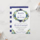 Marinho de Aquarela e flores azuis de verão design com armação floral de Wreath com dourado confetti e padrão de listras