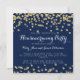 design de Convite de festas para aquecimento doméstico elegante e moderno com o modo Glitter Confetti Dourado no Marinho Azul, nome personalizado e data e texto adicional.
