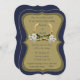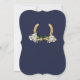 Seus convidados de casamento vão adorar esta bela e elegante suíte de casamento feita em um estilo marinho e ouro com um elemento floral contido em uma ferradura de sorte. O texto é feito em uma fonte de corda na moda, mas você pode mudar isso se desejar, assim como a cor do texto. Os envelopes brancos padrão são incluídos em convites, reposicione placas e notas de agradecimento. Você pode não solicitar o branco e comprar os Marinhos correspondentes