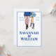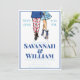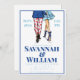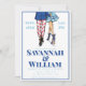 Este convite apresenta um na moda, um casal de pré-disquete vestido de traje clássico — ele está vestindo um marinho preto, calças de lagosta e loafers, enquanto ela fede em um vestido azul-chic com ric e saltos marinhos. O convite é divertido e elegante. Uma maneira perfeita de celebrar o casal feliz.