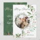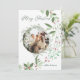 "Compartilhe alegria de férias com elegância usando este Cartão de Férias de Natal Holly Botanical Greenery. Apresentando uma sagrada e elegante botânica e duas fotos carinhosas, este cartão premium garante saudações sazonais alegres."