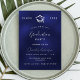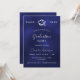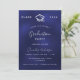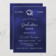 Um convite moderno e elegante para a festa de formatura. Um fundo azul marinho, texto branco. A cor azul é irregular. Personalize e adicione um nome, ano e detalhes.