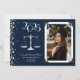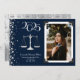 Celebrar o novo formando de doutorado juris da faculdade de direito com este advogado azul-prata e marinho que amplia o anúncio de graduação! Elegante com uma borda de fotos vintage e sotaques de confete dourados! Perfeito para qualquer estudante de Direito!