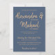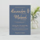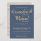 O convite para casamento da Elegante Trendy Typografia em azul escuro da meia-noite com bege claro que apresenta os primeiros nomes da noiva e do noivo com o roteiro de caligrafia. Do lado de trás, há uma pedra como bege listrado, rosa poeirenta e padrão balístico de cinzas. — Observe que a cor de fundo do marinho no lado frontal é editável. Você pode alterá-lo depois de selecionar a opção PERSONALIZAR mais. — O convite é adequado para qualquer época - primavera, verão, outono, inverno - recepção de casamento interior.