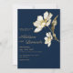Convite Marinho de luxo, azul, dourado, flor branca e bril