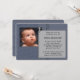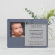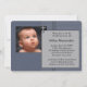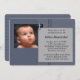 Convite para batizar fotos azuis do marinho Elegante. O marinho azul e o convite para apresentação de cinzas deste rapaz fofo é facilmente personalizado para o seu evento simplesmente adicionando os seus detalhes de fotografia e evento, estilo de fonte, tamanho e cor de fonte e texto.